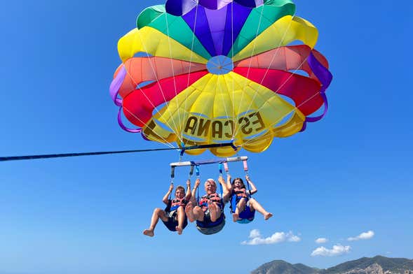 At the appointed time, we'll meet you at the D60 jetty in the port of Santa Eulalia del Río, where a boat will be waiting to take you into the turquoise waters of the Mediterranean for a fun parasailing experience in Ibiza. All aboard!